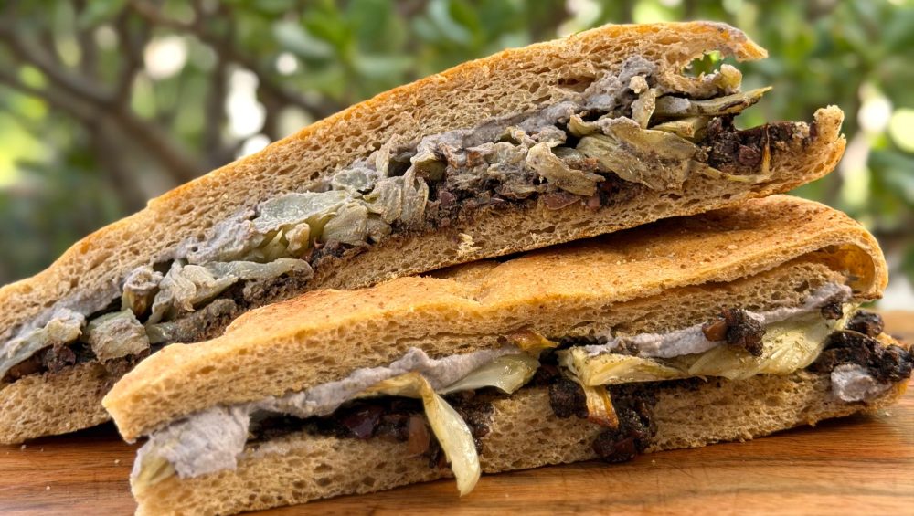 Questa ricetta nasce dalla collaborazione con Formyna, un’azienda di Carpi, a pochi passi dal nostro laboratorio, che produce alternative vegetali ai formaggi a partire da anacardi fermentati. Abbiamo deciso di creare insieme una focaccia Primus farcita 100% vegetale, con una base di crema di anacardi stagionati, una tapenade vegan con aglio nero fermentato e finocchi al forno conditi con polvere di capperi. Una ricetta a base di alimenti fermentati, proteica, molto saziante e buonissima.